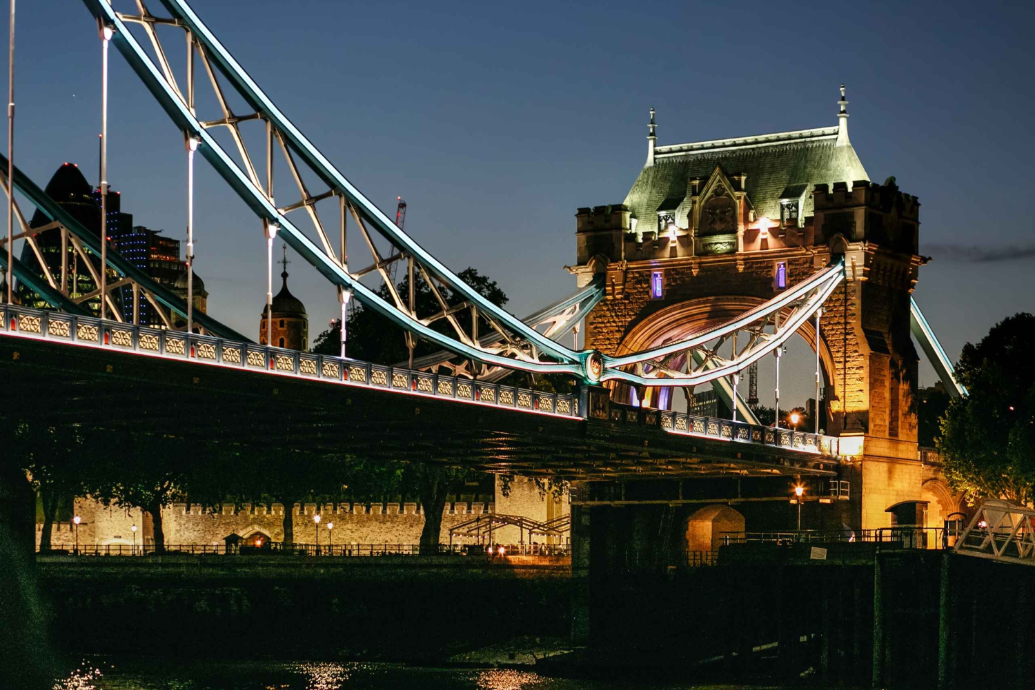 Tag på en afslappende aftenbådtur gennem hjertet af London, og se byens berømte seværdigheder oplyst om aftenen. Om sommeren kan du også nyde solnedgangen fra vandet, inden byens lys tændes. Den 3 timer lange bådtur, som sejler fra Westminster til Thames Barrier og tilbage igen, indledes med en velkomstdrink, når du går ombord. Efter din cocktail følger en lækker 4-retters middag og underholdning med en live sanger. Bemærk, at menuen for alle krydstogter, der afgår fra 1. januar 2026, ændres til en 3-retters middag, da suppe ikke er inkluderet. Denne bådtur med middag fra hjertet af London kombinerer et skønt måltid med cabaret og dans. Sejl forbi de moderne vartegn O2 Arena, Canary Wharf og City Hall, og fortsæt helt til den imponerende dæmning Thames Barrier, hvorefter du sejler tilbage til Houses of Parliament. Når mørket falder på, går middagen over til en sanger, der synger sange fra både fortiden og nutiden, sammen med anden populær musik. Du kan danse både under og efter denne caraberetoptræden, eller bare læne dig tilbage og nyde musikken og de oplyste seværdigheder. Bådturen slutter ved det oprindelige startsted.