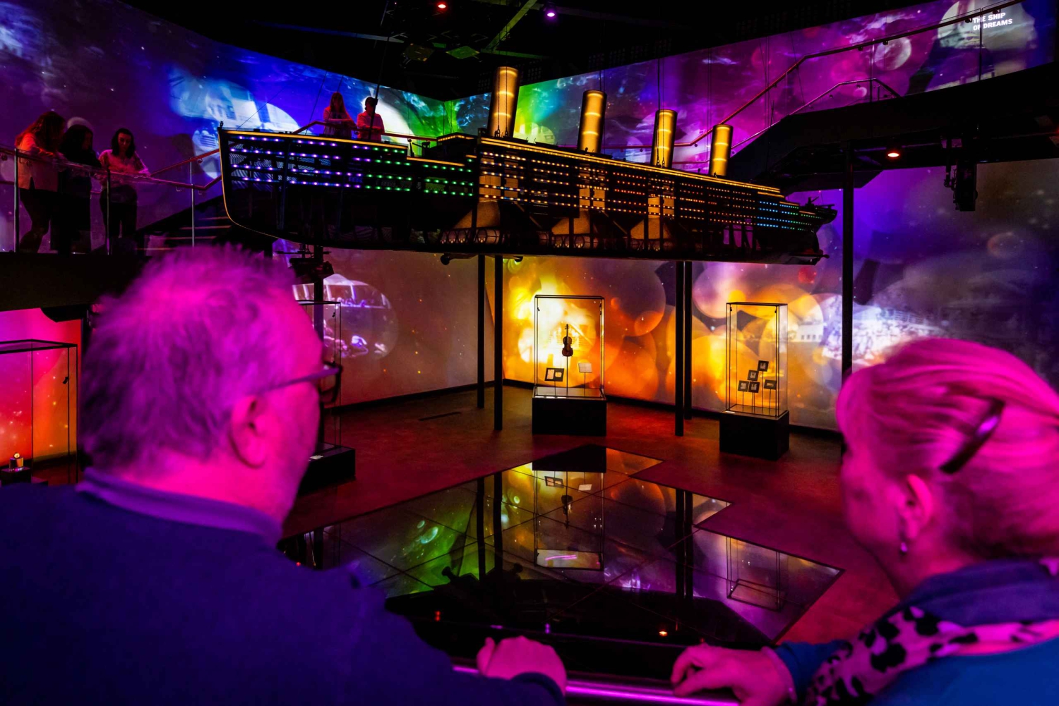 - Se udstillinger, der beskriver Titanics konstruktion og luksuriøse interiør.
