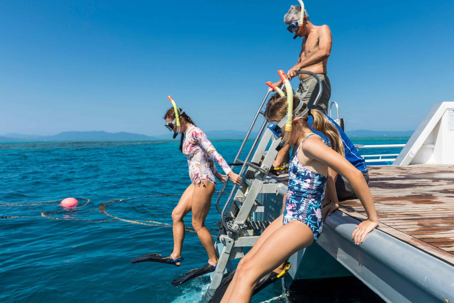 Krydstogt med katamaran Marine guider Bådtur med glasbund på Great Barrier Reef Guidet tur med snorkel på Great Barrier Reef 2 forskellige besøg på Great Barrier Reef i beskyttede marineparkzoner Snorkeltur med marin naturforsker Snorkeludstyr, inklusive masker på recept Lycra-dragter, våddragter (sæsonbestemt) og flydeudstyr 6 timer på Great Barrier Reef - den eneste revoperatør, der tilbyder dette Fodring af fisk Brusere med ferskvand Dansk wienerbrød og frisk frugt ved ombordstigning Te og kaffe ved ombordstigning og hele dagen, når vi ligger ved kaj Stort frokostbord med rejer, røget laks, blandet kød og kylling, 3 salater og brød Koldt vand Fade med tropisk frugt, ost, kiks og forskellige kager serveres på tilbagevejenImportant Information