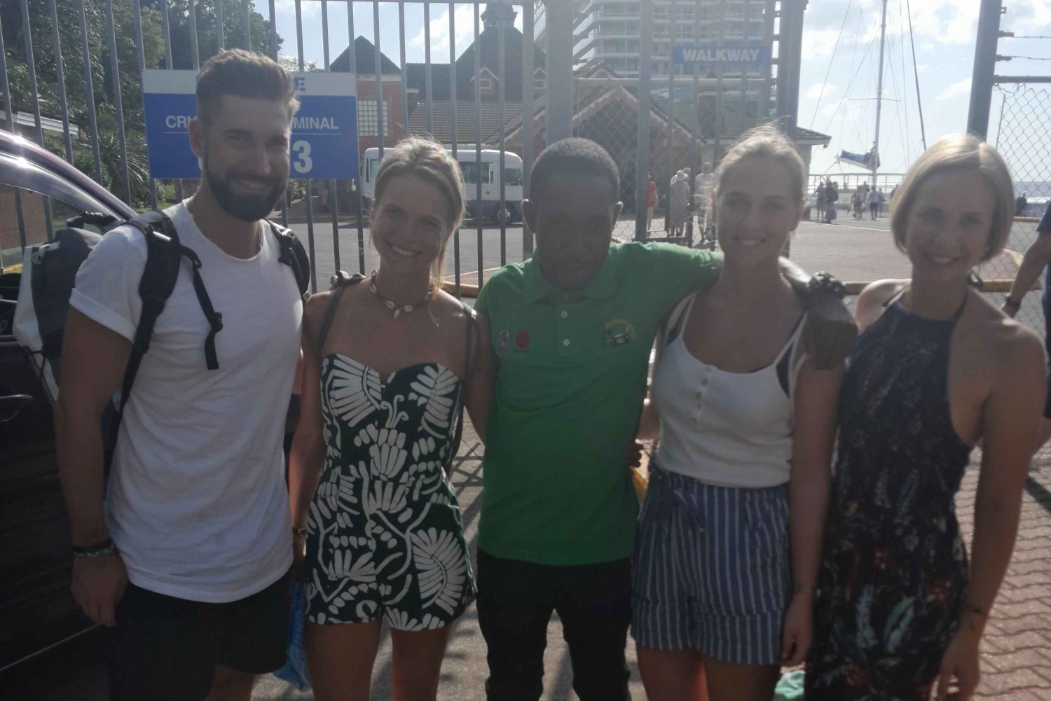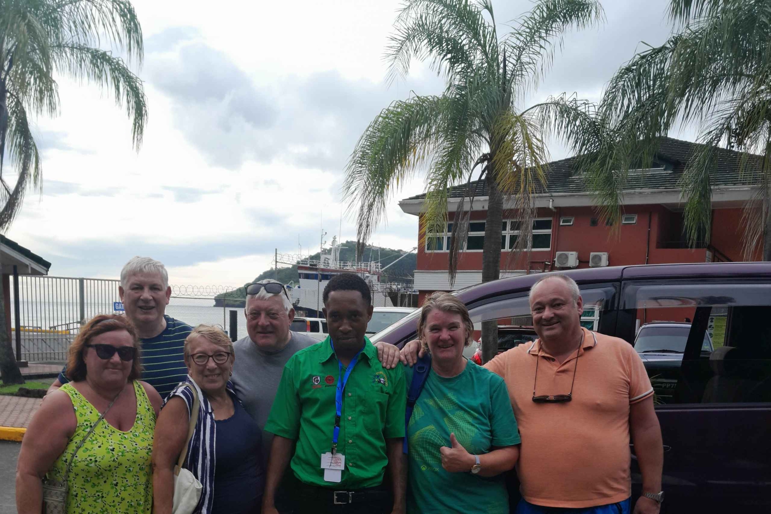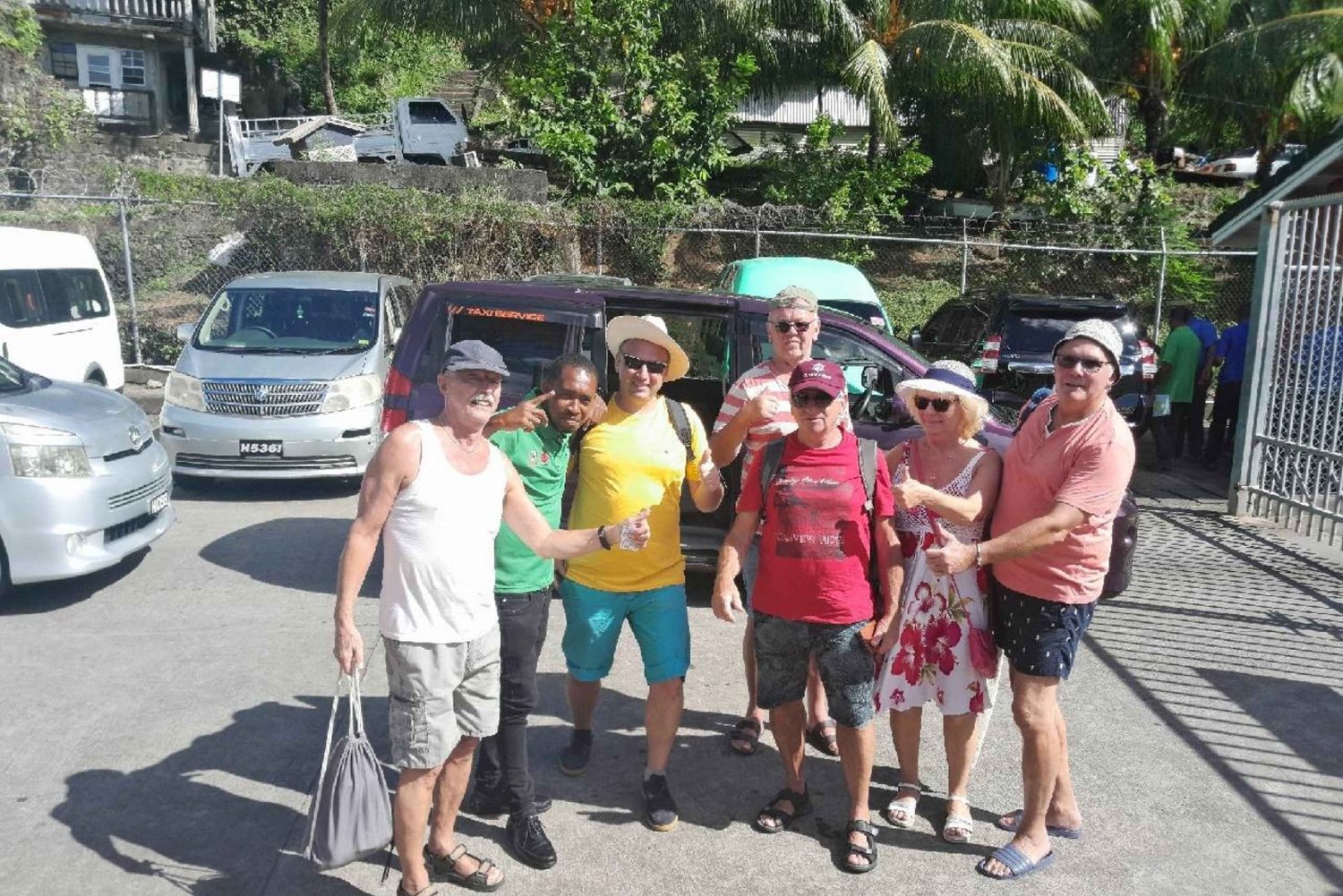 Nyd en fantastisk tur med en prisvindende, certificeret taxaoperatør og en guide, der udforsker Dark View Falls og de smukke områder omkring Kingstown. Når du bliver hentet i Kingstown, kører vi forbi historiske bygninger som premierministerens kontor, mens du kører til fiskerlandsbyerne Layou og Barrouallie, hvor du måske får mulighed for at se hvaler. Vi gør et lille stop i hver landsby for at tage billeder af de omkringliggende bjerge og det smukke vand. Derefter kører vi ned til Dark View Falls, hvor to smukke vandfald strømmer ned ad høje klippevægge og styrter ned i naturlige pools, som du kan svømme i. Vi krydser over en smuk bambusbro, som selv personer over 90 år krydser dagligt, tæt på parkeringspladsen. Ved vandfaldene er der pavilloner, toiletter, gratis wifi-internet, omklædningsrum, udsigtsplatform og swimmingpools. Derefter går vi tilbage til Pirates of the Caribbean, hvor en del af filmen blev filmet. Alle rekvisitterne fra filmen er stadig på plads. Der er også en smuk sort sandstrand ved Pirates of the Caribbean. Vandet er så smukt, at man kan se alle de forskellige fiskearter svømme rundt i det. Det rygtes, at nogle turister har fundet guld på den sorte sandstrand. Efter piraterne går vi over til den smukke buccament-strand ved siden af det smukke sandals resort, hvor vi slapper af, inden vi kører tilbage til vores destination. På buccament-stranden er der restaurant og barer, stole, senge, parasoller, hummer, mangosmoothies og meget mere.Includes
