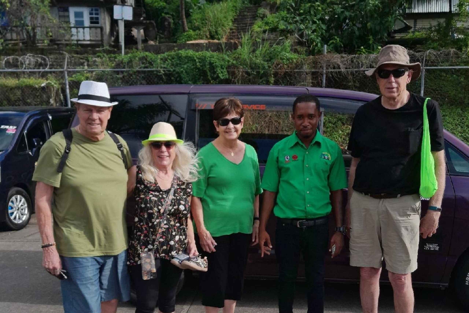 Denne tur inkluderer stop ved flere smukke steder, herunder (1). City Tour; (2) Dark View Falls; (3). Pirates of the Caribbean filmoptagelsessted; og (4). Buccament Beach