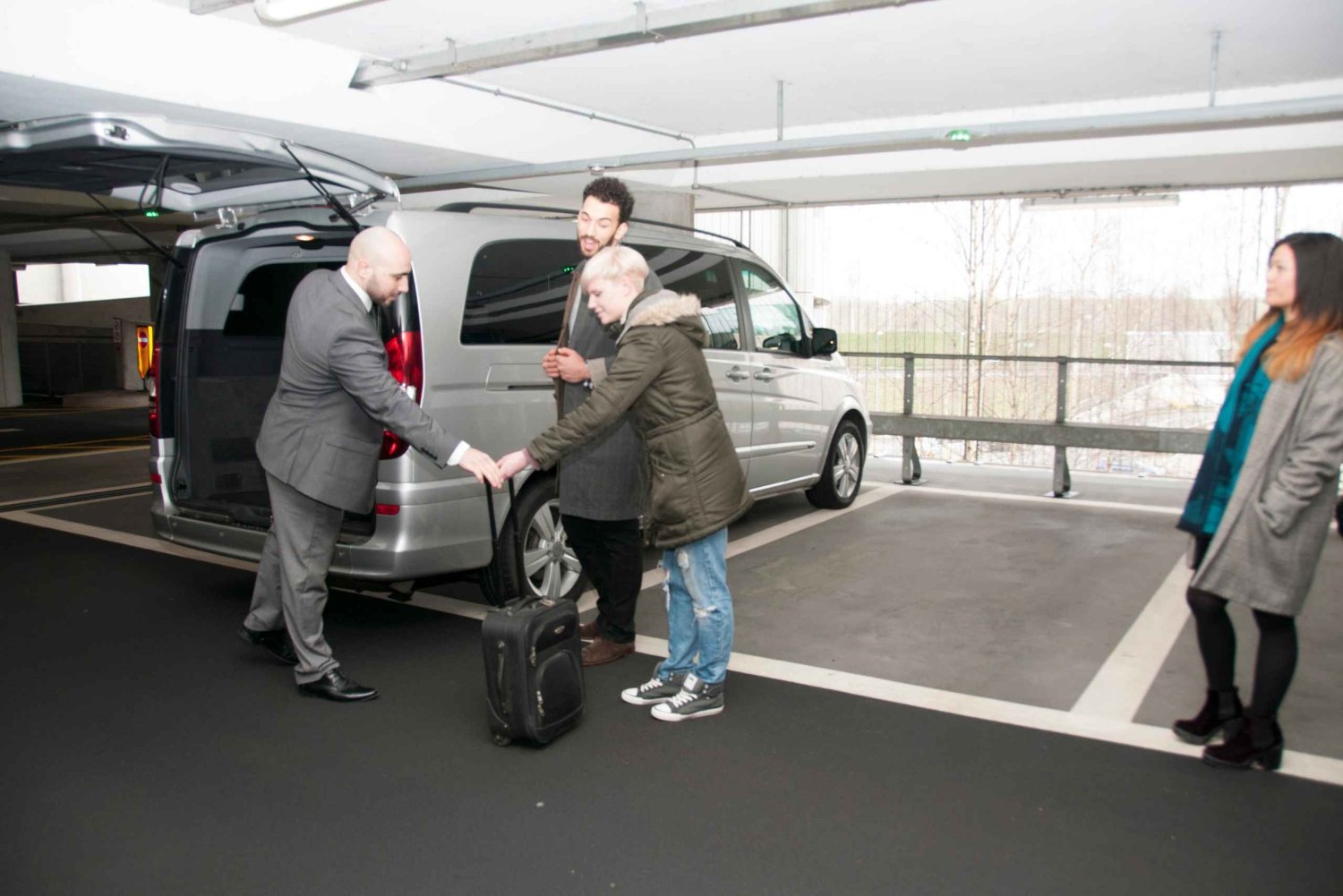 Rejs komfortabelt og slap af, mens du bliver transporteret af en chauffør i en privat bil med aircondition fra alle større lufthavne i London i god tid. Vælg mellem afhentning fra Heathrow, Gatwick, London City, Luton eller Stansted lufthavn. Undgå besværet med offentlig transport, udgifterne til taxaer i sidste øjeblik og forvirringen ved at finde rundt i et fremmed land med en transportservice, der er tilgængelig 24 timer i døgnet, 365 dage om året. Når du har klaret tolden, bliver du 60 minutter efter flyets landing mødt af den lokale partners repræsentant, som vil holde et skilt med dit navn i hånden. Bliv eskorteret til din bil med chauffør, og din bagage bliver ordnet og læsset ind i køretøjet. Derefter bliver du kørt sikkert og komfortabelt til din valgte destination. Ved ankomsten vil din chauffør læsse din bagage af.Includes