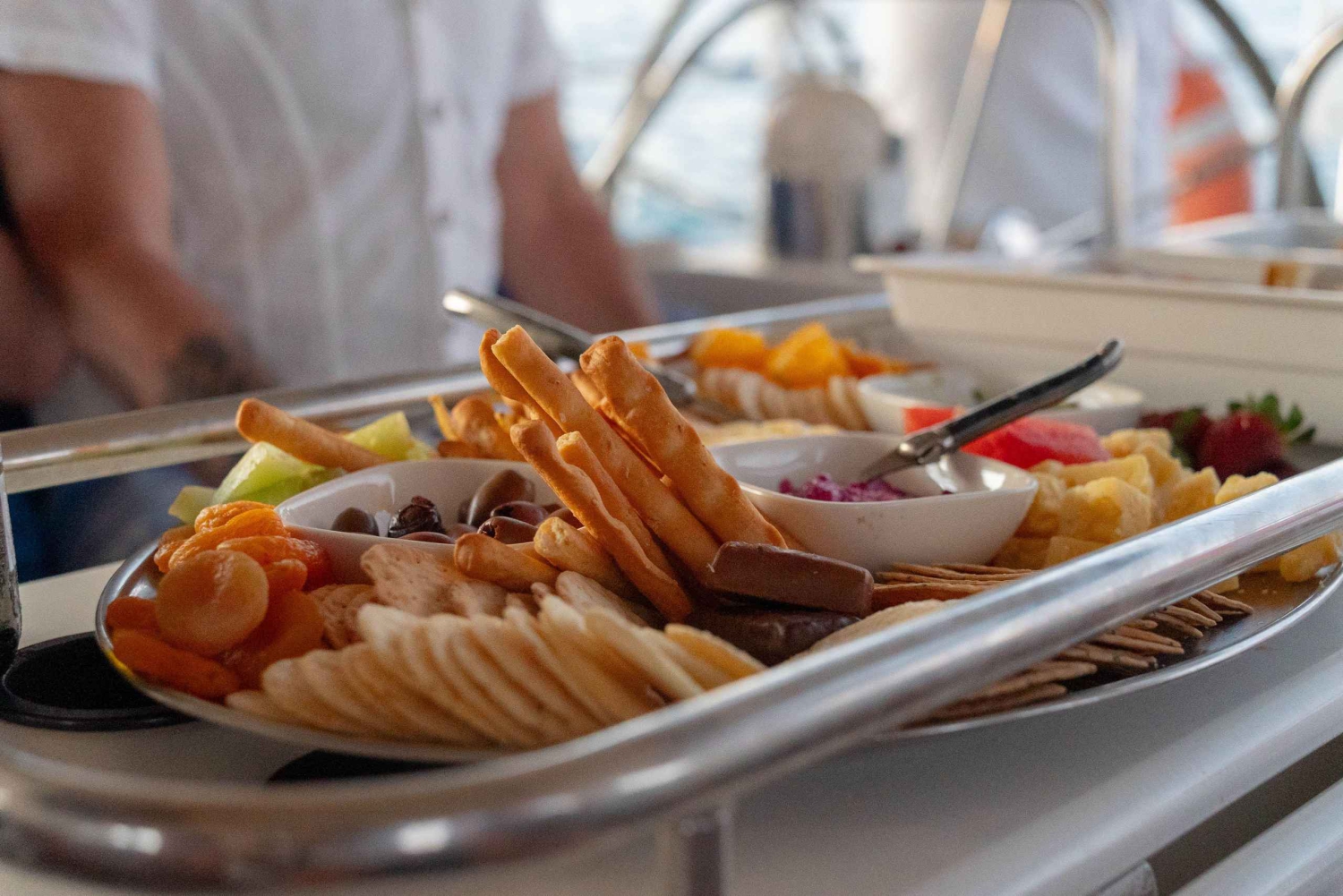 Træd ombord på en ægte smagsprøve på fransk luksus, og sæt sejl mod hjertet af Whitsundays. Tag afsted fra Airlie Beach' fantastiske kyster på en eksklusiv privat sejltur ombord på en smukt indrettet fransk sejljacht. Forestil dig, at du glider hen over krystalklart vand, havbrisen i håret og et glas kølig vin i hånden fra den fuldt licenserede bar. Sejl gennem det turkisblå paradis, Whitsundays, til de uberørte kyster på South Molle Island, en afsidesliggende perle, der er perfekt til svømning, snorkling eller bare afslapning på stranden. Dyk ned og oplev farverige koralrev, livligt marineliv og de rolige tropiske farvande, der er perfekte for både erfarne snorklere og førstegangsbrugere. Når du kommer tilbage fra vandet, bliver du budt velkommen om bord med duften af en frisklavet frokost, som din vært og skipper har lavet med kærlighed og de bedste lokale råvarer. Nyd et gourmetmåltid udendørs med en kølig drink, mens du nyder panoramaudsigten over øen fra dækket på din elegante yacht. Denne intime og personlige charter er perfekt for gæster i alle aldre og især velegnet til krydstogtskibsbesøgende, der ønsker at få mest muligt ud af deres tid i Whitsundays. Tag med på en dag med luksus, eventyr og afslapning på vandet. Vælg dit afgangstidspunkt fra kl. 8.00. Find ud af, hvornår dit skib lægger til og afsejler, inden du booker, så du har tid nok til denne mulighed.Includes