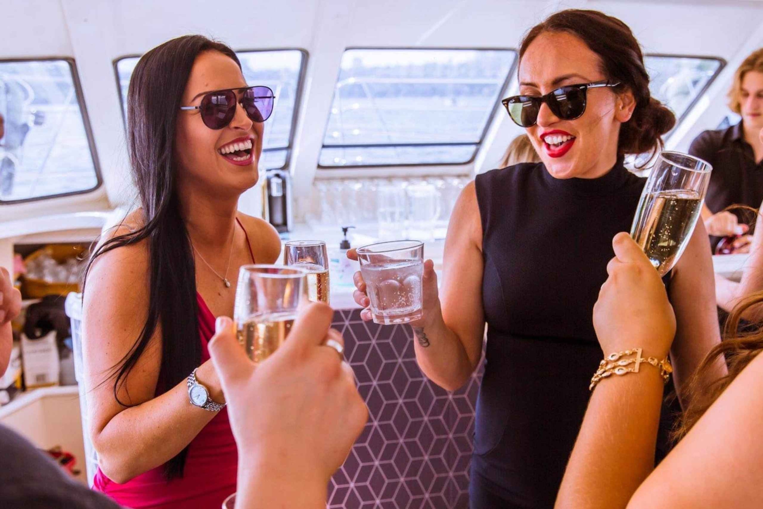 - Et 90-minutters krydstogt på en luksuskatamaran med en bar med udskænkningsbevilling om bord