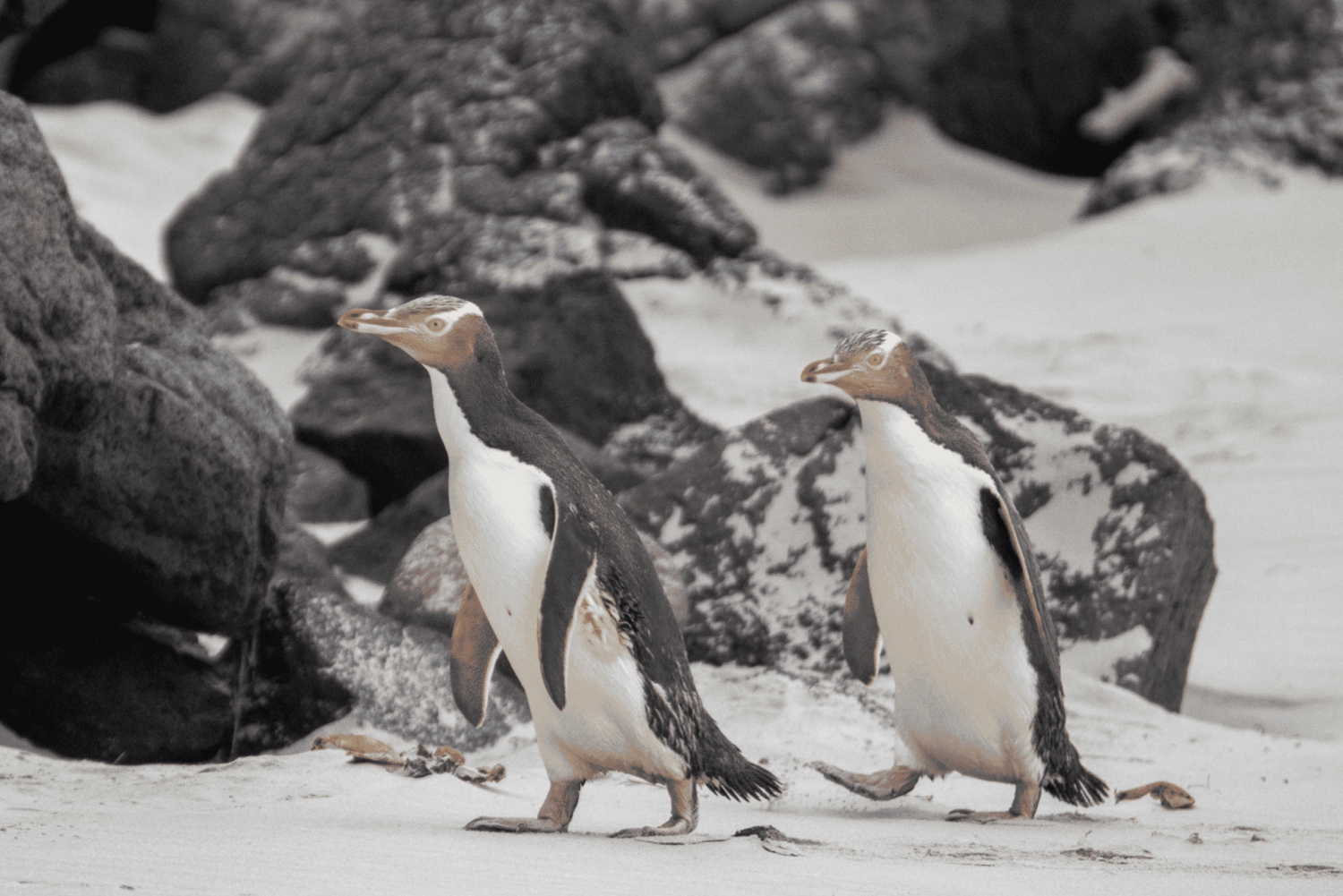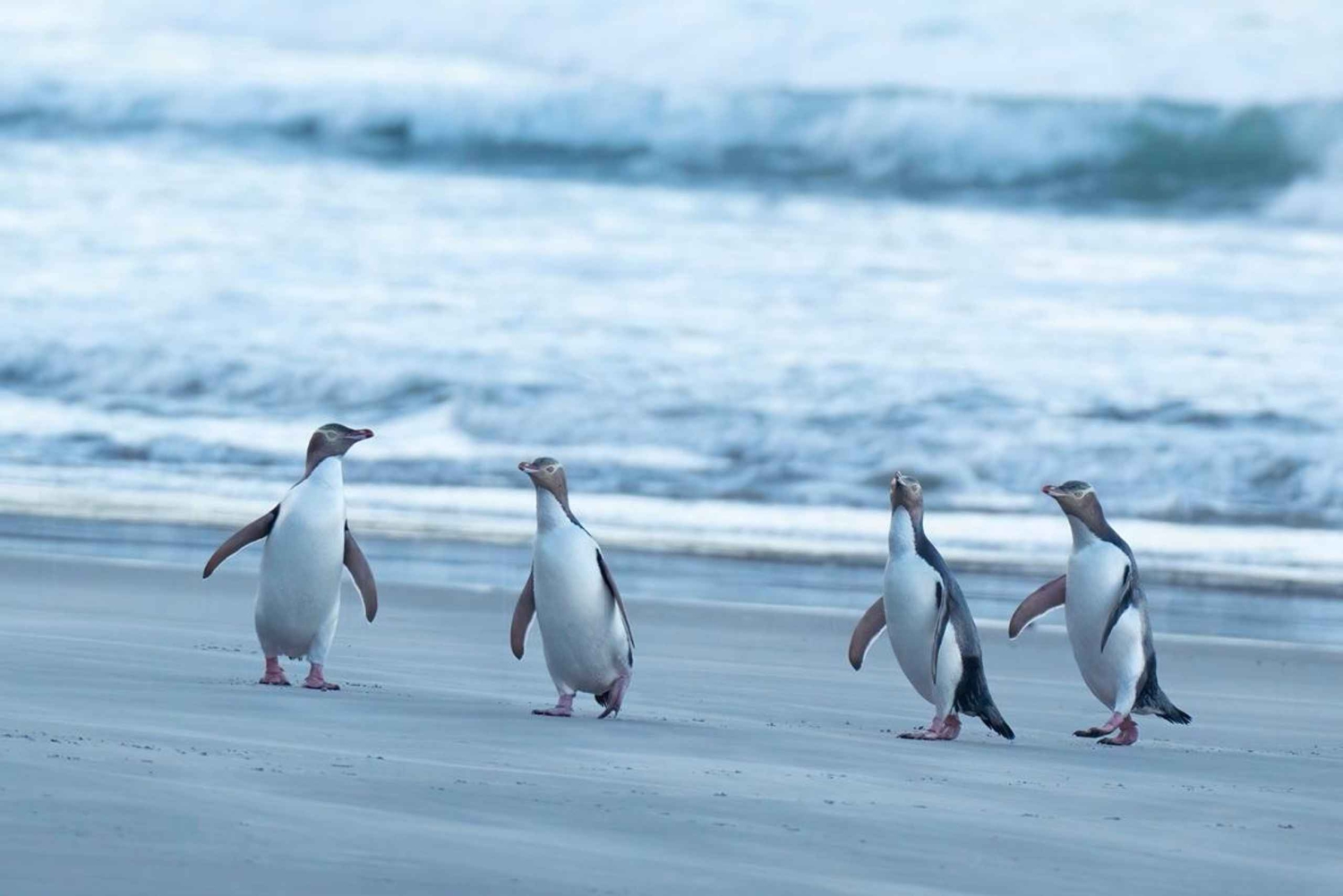 - Vistas inigualables de pingüinos de ojos amarillos, leones marinos de Nueva Zelanda, lobos marinos de Nueva Zelanda y cachorros.
