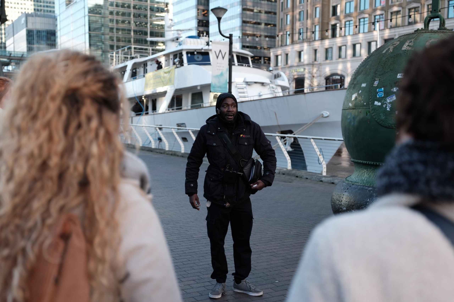 Únete a Stefan en una impactante visita guiada a pie de Unseen Tours por Canary Wharf y West India Quay. Explora la historia de la zona, incluidos los antiguos almacenes utilizados para el comercio industrial mundial, los alojamientos de los trabajadores portuarios y sus capitanes, y los restos amurallados de un incendio devastador. Unseen Tours es una empresa social sin ánimo de lucro. Nuestra misión es apoyar y empoderar a personas vulnerables con experiencia en la falta de hogar, proporcionándoles la oportunidad de convertirse en guías turísticos, lo que aumenta su confianza y amplifica sus voces. Nuestros magníficos guías conocen a la perfección las calles de la zona y te mostrarán el Londres auténtico a través de sus historias y sus conocimientos incomparables sobre la historia de la zona. Tu entrada ayuda a nuestros guías a ganarse la vida haciendo algo que les apasiona, ya que la mayor parte de los ingresos se destina directamente a ellos. Además, permite a nuestros guías entablar conversaciones que cuestionan las percepciones sobre las personas sin hogar y generan un cambio social. En este tour por Canary Wharf y West India Quay, aprenderás sobre la historia de la zona, incluidos los orígenes de West India Quay y cómo obtuvo su nombre, la trata transatlántica de esclavos, que desempeñó un papel importante en la construcción de Londres, y las condiciones contrastantes de los trabajadores y los capitanes de puerto. Esto te permitirá descubrir cómo la historia local ha contribuido a crear y moldear la zona hasta convertirla en lo que es hoy: el centro de negocios de Londres. A lo largo del recorrido, Stefan no solo proporcionará información, sino que también compartirá su propia experiencia como persona sin hogar. Esto te permitirá conocer diferentes tipos de personas sin hogar y sus condiciones de vida, así como las dificultades del trabajo temporal. Escucha más de boca del propio Stefan: «Hola, soy Stefan y estoy encantado de mostrarte West India Quay. Soy un guía local, nacido en Lambeth y criado en Peckham, y estoy orgulloso de representar a las personas con autismo. En 2023, participé en un concurso organizado por Theatreship para hablar sobre los Docklands, lo que despertó mi interés por Canary Wharf y West India Quay, que siguen apasionándome hoy en día. Canary Wharf tiene una rica historia que descubrir, situada entre sus numerosas oficinas y empresas. Mi experiencia con la falta de hogar también pone de manifiesto la naturaleza oculta de los alojamientos temporales y las malas condiciones de vida, y quiero ayudar a dar a conocer las formas menos conocidas de la falta de hogar. Además de las visitas guiadas, me gusta actuar y tocar la batería y la percusión. También trabajo como camarero en algunos de los estadios y recintos más grandes y concurridos de Londres. Accesible para sillas de ruedas y scooters de movilidad bajo petición, y se admiten mascotas. Cualquier donación que añadas al finalizar la compra nos ayudará a cumplir nuestra misión de formar a personas más vulnerables para que se conviertan en guías turísticos y desafíen los estigmas en torno a las personas sin hogar. ¡Gracias por tu apoyo!Includes