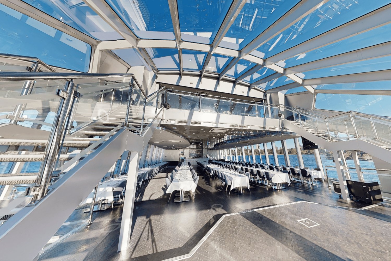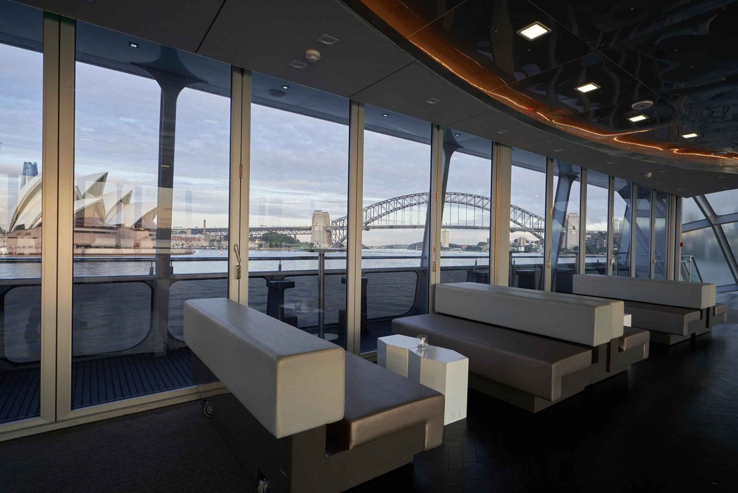 Naviguez dans le port de Sydney à bord d'un bateau en verre avec un déjeuner buffet. Admirez la vue depuis les baies vitrées et savourez un repas sain et équilibré. Embarquez à bord du Clearview, un luxueux bateau en verre climatisé au design nautique et à la décoration contemporaine. Rendez-vous au salon Mezzanine et au Sky Deck pour immortaliser plusieurs moments dignes d'Instagram avec votre groupe. Rendez-vous ensuite dans la salle à manger entièrement climatisée et vitrée pour déguster un déjeuner sain et équilibré. Achetez des boissons dans les bars à bord tout en naviguant dans le port. Admirez la vue à 360° sur le port depuis les baies vitrées.Includes