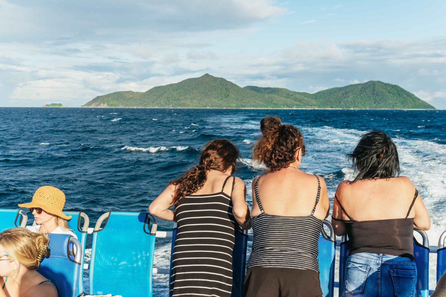 Scoprite Fitzroy Island con un'escursione da Cairns. Godetevi un giro panoramico in traghetto ed esplorate i numerosi sentieri escursionistici. Ammirate la vita marina della barriera corallina mentre fate snorkeling o osservate da una barca con fondo trasparente. Scegli tra una vasta gamma di pacchetti, che includono i trasferimenti per esplorare l'isola in autonomia o attività come lo snorkeling o l'escursione in barca con fondo trasparente. Esplora i 339 ettari di foresta pluviale lussureggiante che coprono il 94% dell'isola e sono protetti e gestiti come parco nazionale. I sentieri escursionistici sono adatti a tutti i livelli di preparazione fisica e ti permettono di esplorare l'isola a tuo piacimento. Il catamarano veloce parte dal Marlin Marina, con check-in direttamente a bordo. Naviga verso sud lungo le calme acque della costa per raggiungere Fitzroy Island in soli 45 minuti, con fino a 7 ore a disposizione per esplorare l'isola tropicale.Includes