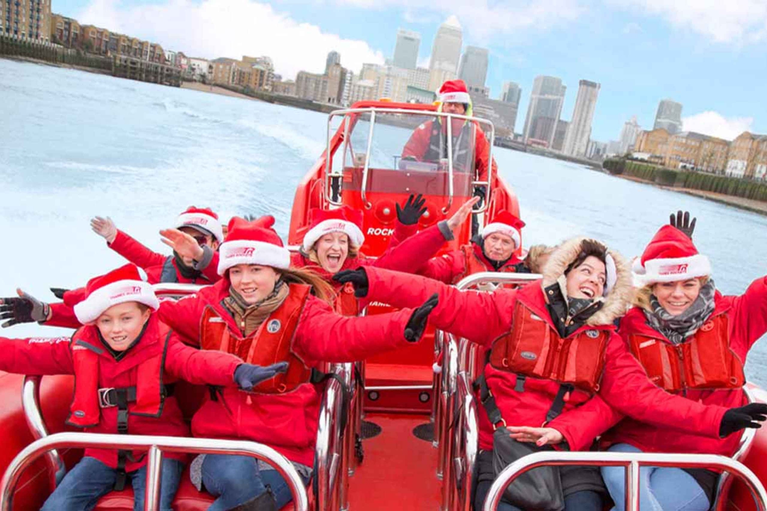 Vier de feestdagen met familie of vrienden of beloon je gewaardeerde team of klanten met een avontuurlijke kerstboot over de Theems. Stap in een van de 'rode raketsleeën' van Londen die je van de London Eye door het hart van de hoofdstad naar Canary Wharf brengen en weer terug op een kerstavontuur als geen ander. Je bekroonde gids zal je dan een sightseeing-ervaring geven die je zal vervullen met kerstsfeer. Luister naar de 880 pk sterke motoren die 'rocket style' op toeren komen en sprint als Rudolph tot snelheden van 30 knopen! Geniet van 50 minuten alleen maar kerstplezier met de snelste rode sleeën op de rivier. Draai en keer op de Theems met een medley van feelgood kerstklassiekers om mee te zingen.Includes