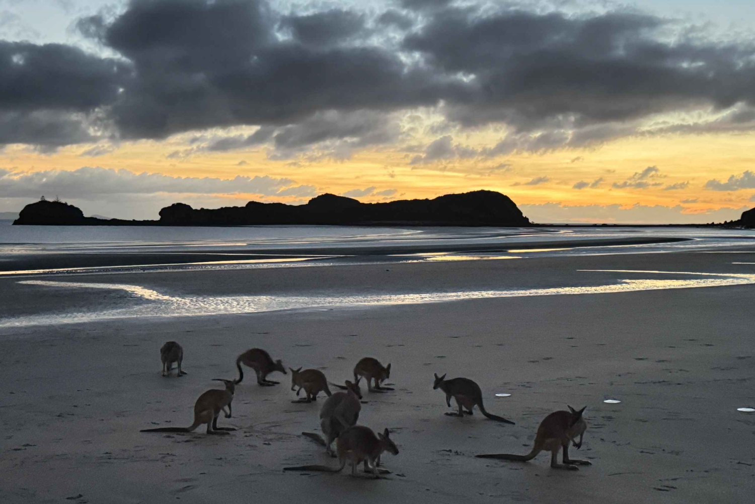 - Se på ville kenguruer ved soloppgang på en Whitsundays-strand