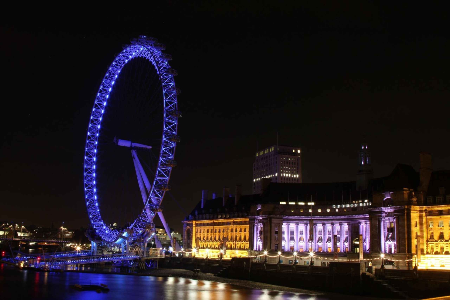 Nyt en kveld i et privat kjøretøy og sjåfør. Turen starter fra det øyeblikket du blir hentet fra hotellet. Deretter blir du kjørt forbi alle de vakre landemerkene i London. Byen London om natten er like, om ikke vakrere enn den er på dagtid. Når solen går ned, tennes bylysene og mange av Londons mest kjente landemerker glitrer over byens silhuett. Natttid i London er en helt annen opplevelse. Det er som om byen har våknet til liv. Denne turen gir deg et helt annet perspektiv på London. Du vil bli kjørt gjennom Westminster Abbey, Buckingham Palace, Big Ben, Palace of Westminster, The London Eye, Tower Bridge, London Bridge, Tower of London og mange mange andre vakre steder, som du aldri kunne forestille deg å se. Sjåføren vil stoppe på noen av disse nettstedene for å gi deg sjansen til å ta bilder, som du vil sette pris på resten av livet. Turen avsluttes på hotellet ditt, eller hvis du velger å bli droppet et annet sted, kan det ordnes.Includes