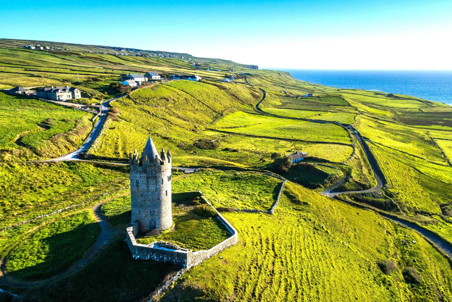 Legg ut på en dagstur som lar deg nyte det beste av vestkysten av Irland på bare noen få timer. Utforsk det naturskjønne South Connemara, oppdag Inis Oírr, den minste av Aran-øyene, og nyt en fantastisk cruise under Cliffs of Moher. Tilbake på fastlandet kan du reise langs Wild Atlantic Way gjennom det månelignende landskapet i Burren i County Clare, før du returnerer til Galway. Opplev den barske skjønnheten i Connemara, de ville Aran-øyene, de spektakulære Cliffs of Moher og den mystiske Burren-regionen – alt på én dag. Den innovative turruten, ledet av en ekspert lokal guide, inkluderer flere fergeturer og en dedikert sjåfør med en luksuriøs minibuss. Kjør rundt hele Galway Bay, som har gitt turen kallenavnet «Galway Bay In A Day». Steder du besøker underveis inkluderer: Salthill, Connemara, Rossaveal, Inis Oírr/Inisheer, Cliffs of Moher. Doolin, Ballyvaughan, Wild Atlantic Way Coastal Road, Blackhead Lighthouse og Dunguaire Castle. Fra Galway City tar du den naturskjønne kystveien langs South Connemara til Rossaveal Harbour. Denne regionen er rik på historie og kultur, og er et av de få områdene i Irland hvor irsk fortsatt er hovedspråket. Nyt gylne sandstrender, turkisblått vann og kanskje til og med et glimt av den lokale delfinen Dusty. Oppdag gamle gravhauger, en middelaldersk kirkeruin, et tre etasjers tårn i en steinalderfestning, et skipsvrak fra 1960, fantastisk utsikt og en av Irlands vakreste strender. Fra Inis Oírr/Inisheer til Doolin kan du ta en naturskjønn fergerute under Cliffs of Moher, som byr på en fantastisk utsikt over dette naturlige vidunderet.Includes