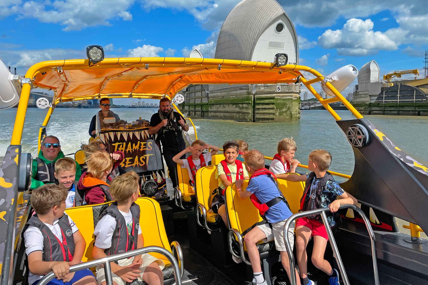 Ta nowa atrakcja to przeżycie, jakiego jeszcze nie było. Pędź z dużą prędkością podczas podróży w obie strony z molo Tower Millennium, w tym krzyczących zwrotów akcji i porywającej muzyki, aż do bariery Tamizy i z powrotem. Nakłuj uszy na dziwne dudniące warczenie, gdy wejdziesz do brzucha Bestii i zobaczysz dym, zanim wyruszysz w swoją przygodę. Komentarz jest minimalny, ponieważ celem tej podróży jest czysta radość. Nie ma mowy o pomyłce, gdy odkręcisz przepustnicę tego odrzutowca o mocy 880 KM, napędzanego przez dwa potężne odrzutowce Rolls Royce.Includes