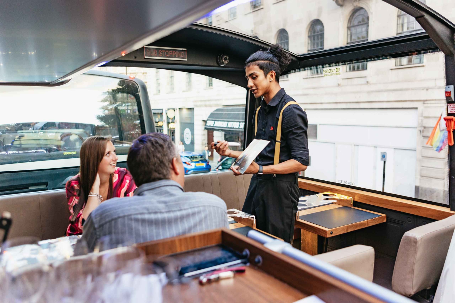 Po spotkaniu z autobusem na przystanku Victoria Embankment 40B, zostaniesz osobiście powitany i usiądziesz przy własnym stoliku na górnym pokładzie luksusowego autokaru ze szklanym dachem. Podczas 3-godzinnej wycieczki, podróżując obok najsłynniejszych zabytków Londynu, otrzymasz pełny 6-daniowy posiłek, przygotowany i ugotowany na świeżo na pokładzie. Pawła, Tower Bridge, Tower of London, Shard, Opactwo Westminsterskie i Houses of Parliament, Trafalgar Square, Piccadilly Circus i wiele innych. Wzbogać swoje doświadczenie, dodając opcję parowania win, starannie dobraną, aby wydobyć to, co najlepsze z każdego aromatycznego dania. Po zakończeniu tego wyśmienitego zwiedzania wrócisz do punktu wyjścia na Victoria Embankment.Includes
