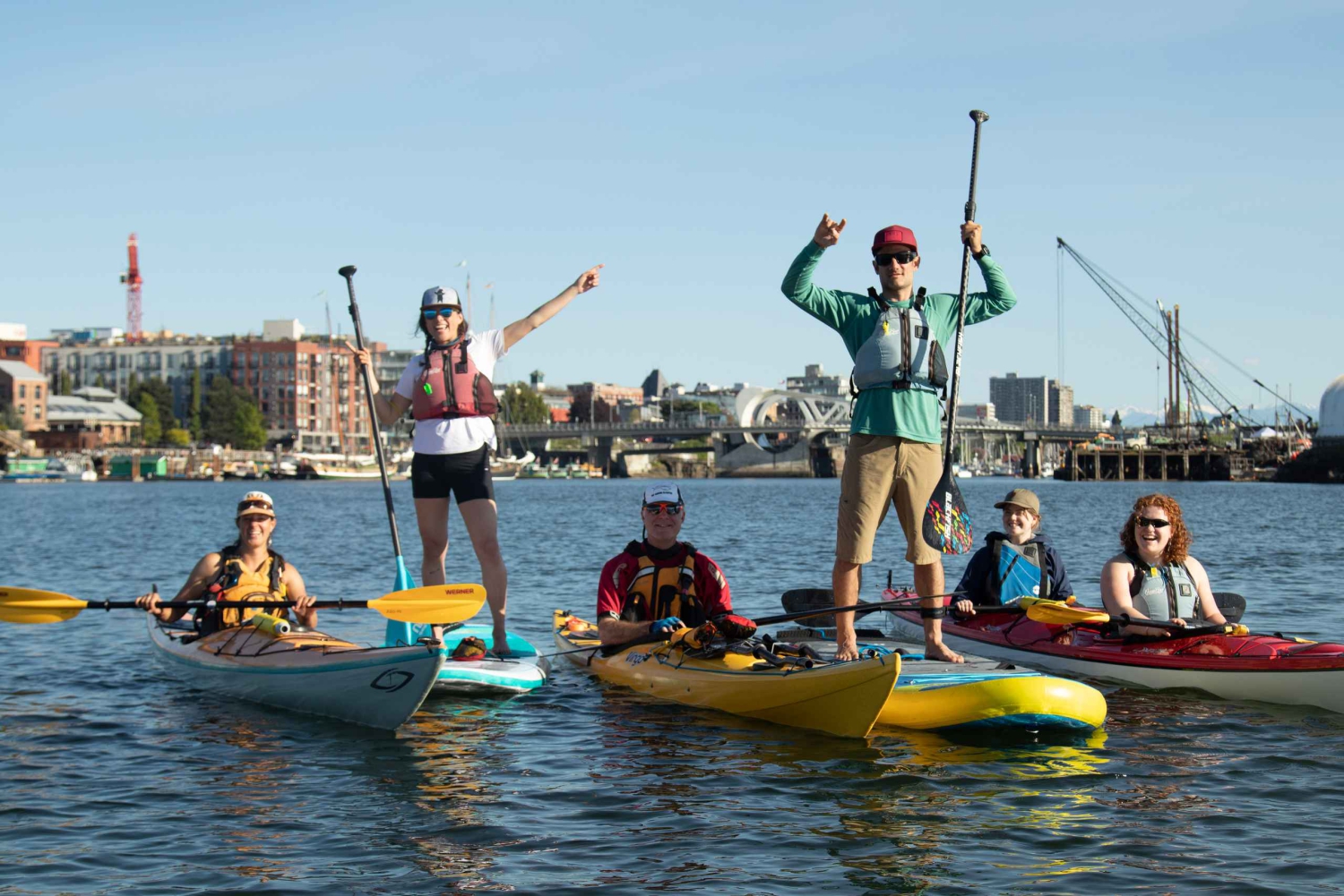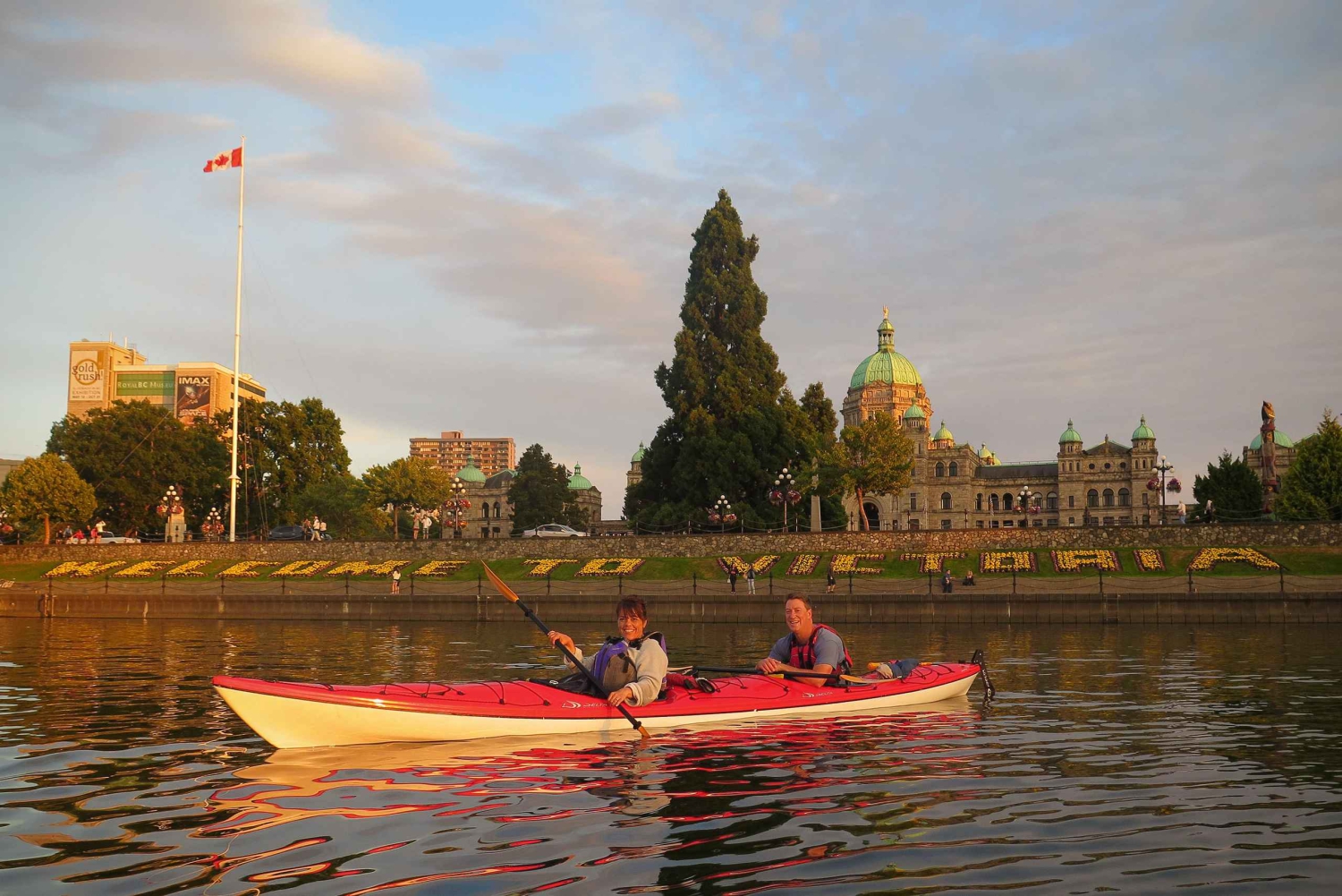 Podczas tej relaksującej wycieczki będziesz miał okazję zobaczyć miasto z bliska. Można zobaczyć tętniącą życiem aktywność wodnosamolotów, dużych i małych promów, łodzi do obserwacji wielorybów, prywatnych jachtów, statków rybackich każdej wielkości, holowników i barek. W tle budynek legislacyjny BC i historyczna cesarzowa Fairmont. Spotkać tu można także orły, czaple, kormorany, wydry rzeczne, foki i mewy. Ta trasa ma wszystko! Z tej wyjątkowej perspektywy Twoi przewodnicy opisują historyczne drogi wodne Wiktorii, które tworzą centrum miasta i port roboczy. W zależności od pogody i ruchu w porcie możemy zdecydować się na pozostanie w górnej części portu, znanej jako Gorge Waterway. Victoria to miasto na wodzie, więc dołącz do nas w przygodzie po naszych drogach wodnych podczas spływu kajakowego Victoria Harbor w Ocean River! Jeśli dołączysz do naszej wieczornej wycieczki, będziesz mógł zobaczyć, jak miasto zmienia się z dnia w noc. Najpierw światła budynku, niektóre wyłączają się, a inne się włączają, potem światła uliczne, a na końcu legislatura BC rozświetla się jak gigantyczna wystawa bożonarodzeniowa, z ponad 3300 żarówek rzucających magiczne zaklęcie na port. Ta wycieczka przebiega przez obszar morski pełen ptaków, które można obserwować. Z dumą wiosłujemy przez NatureHood lub pobliski obszar przyrody w środowisku miejskim, aby odpowiedzialnie obserwować ptactwo i różnorodność biologiczną mórz.Includes