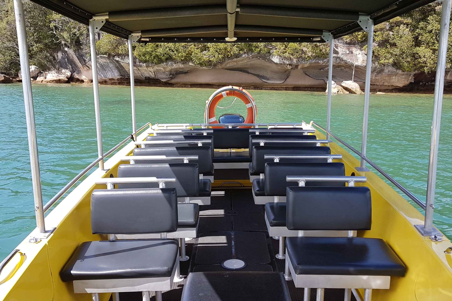 Odkryj Cathedral Cove z luksusem naszej specjalnie zbudowanej łodzi wycieczkowej, wyposażonej w osłonę przeciwsłoneczną i wygodne fotele. Ten malowniczy rejs łodzią to idealne połączenie komfortu i profesjonalizmu, które pozwoli Ci zobaczyć oszałamiający nadmorski raj w Mercury Bay w całej okazałości. Wyrusz na 2-godzinną podróż wzdłuż urwistych, wulkanicznych brzegów zatoki i odkryj jej piękne plaże, w tym Hahei i Lonely Bay. Zbliżymy Cię do najważniejszych atrakcji bardziej niż większe łodzie i zapewnimy usługę, która nie ma sobie równych. Główną atrakcją wycieczki jest słynna na całym świecie Cathedral Cove w rezerwacie morskim Te Whanganui a Hei. To miejsce ma bogate dziedzictwo Maorysów, przyciąga ponad 150 000 odwiedzających rocznie i było wykorzystywane jako plan filmowy do hitu filmowego Narnia. Usiądź wygodnie i zrelaksuj się podczas rejsu po zatoce, podziwiając oszałamiające krajobrazy, które rozciągają się na półwyspie. Po drodze słuchaj przewodnika, który na żywo opowie Ci ciekawe rzeczy o zatoce i jej mieszkańcach. Pamiętaj też, żeby mieć oko na wodę, bo zawsze możesz zobaczyć delfiny, wieloryby i orki w ich naturalnym środowisku.
