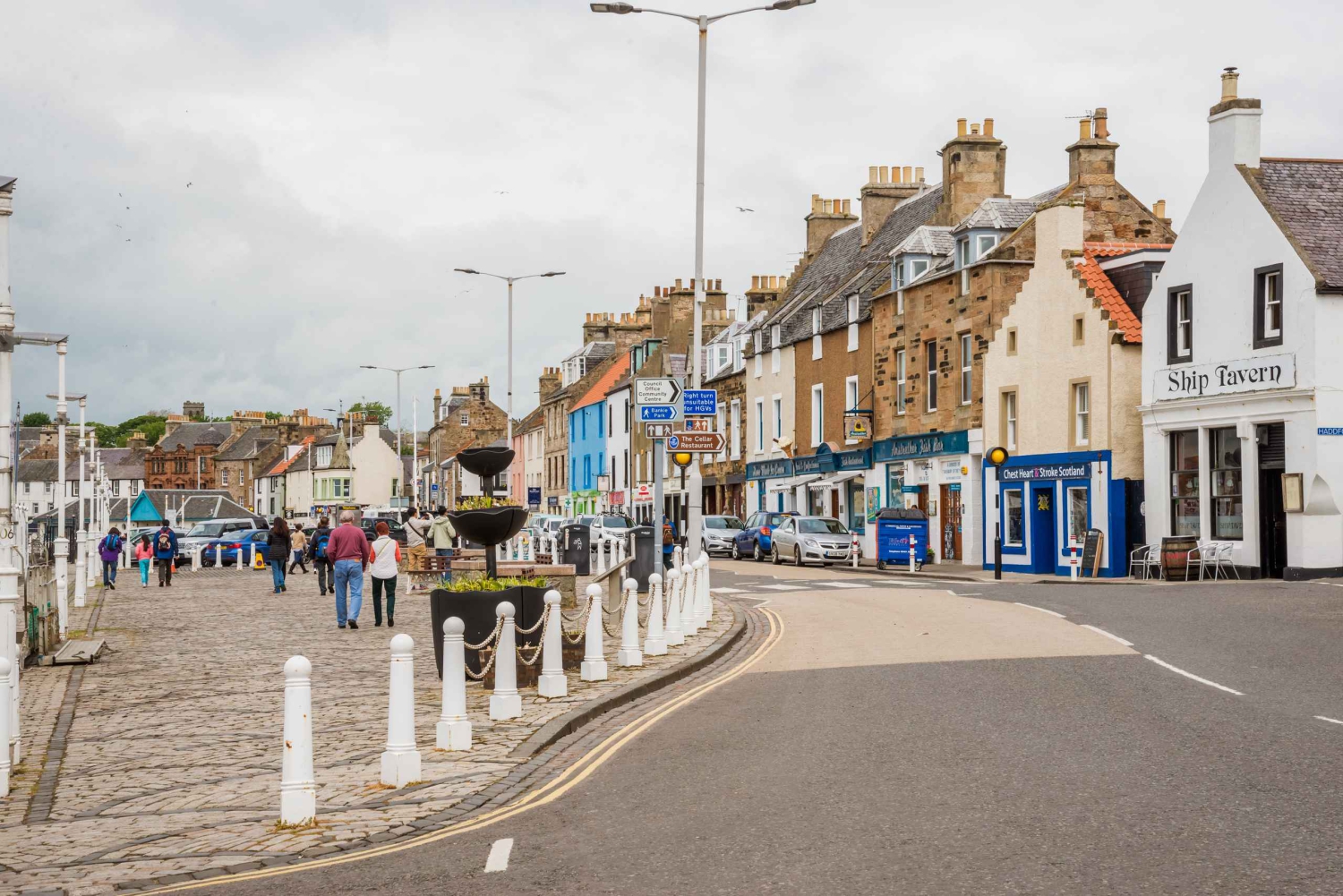 Następnie wjeżdżamy do Królestwa Fife, podróżując przez faliste wzgórza i żyzne pola uprawne. Droga prowadzi nas do East Neuk, co w języku szkockim oznacza „wschodni kąt”. Ten uroczy region słynie z malowniczych nadmorskich wiosek, zapierających dech w piersiach krajobrazów i bogatej historii morskiej. Zatrzymujemy się w tradycyjnej wiosce rybackiej Anstruther (znanej lokalnie jako „Ainster”). Tutaj możesz zwiedzić stare, brukowane uliczki i pospacerować wzdłuż wybrzeża do portu.