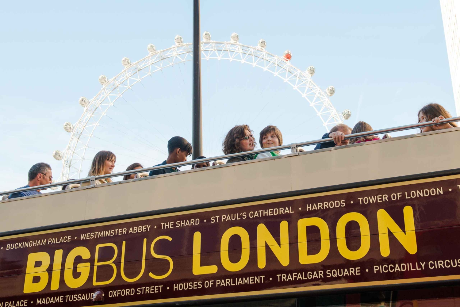 - O ingresso inclui um cruzeiro de ida pelo rio Tâmisa com comentários ao vivo entre Westminster e Tower Pier (aproximadamente 40 minutos). Os cruzeiros saem a cada 15–40 minutos no verão e a cada 30–40 minutos no inverno. Após a reserva, baixa o teu ingresso da City Cruises no nosso portal e mostra-o à equipe da City Cruises antes de embarcar. Os autocarros passam a cada 10–20 minutos no verão e a cada 15–30 minutos no inverno. Todos os autocarros são acessíveis para cadeiras de rodas. Crianças com 3 anos ou menos viajam de graça e não precisam de ingresso. Baixe o app Big Bus para acompanhar os autocarros e encontrar os pontos de parada.