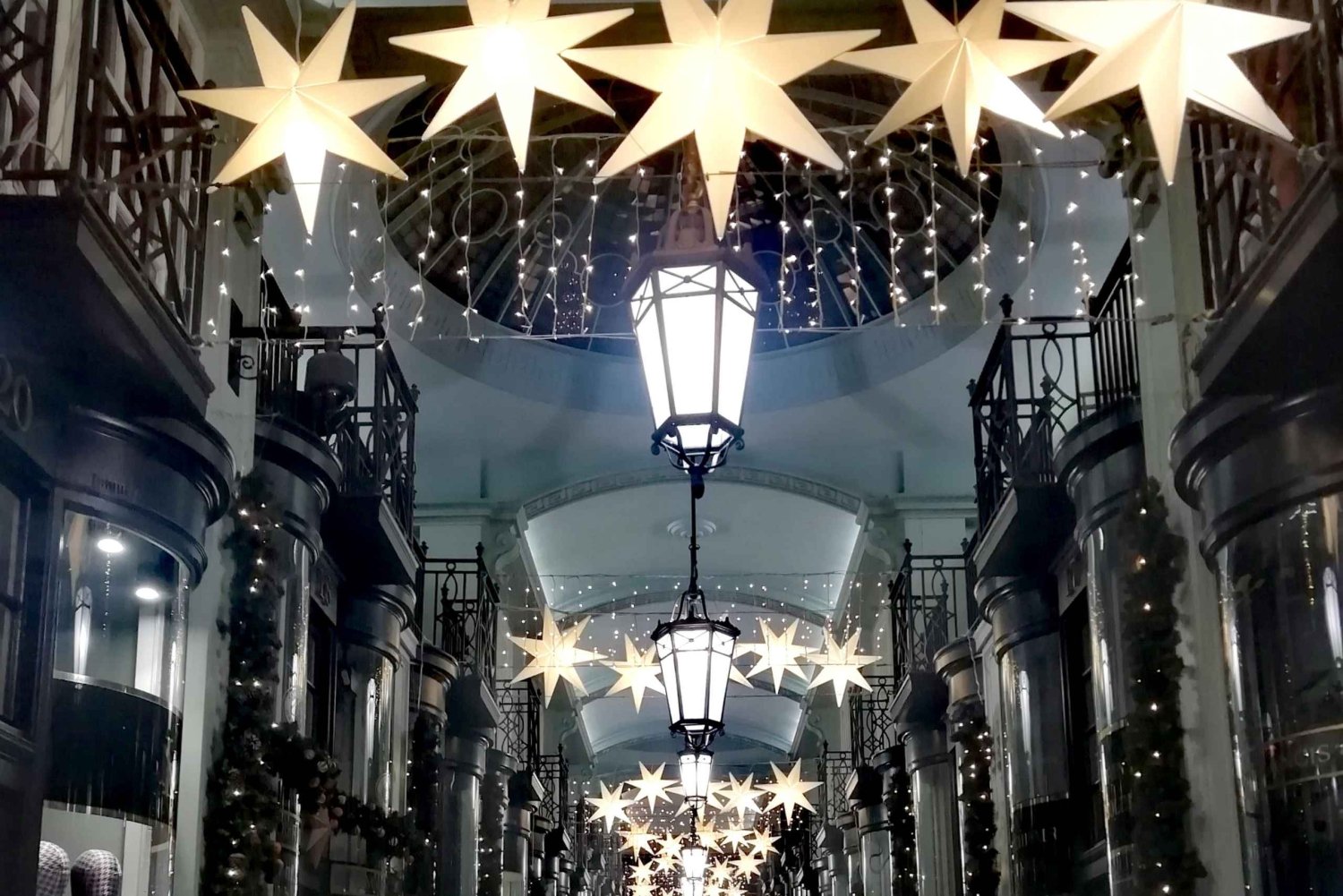 Праздничные рождественские огни в Лондоне Веселитесь и сверкайте, путешествуя по городу и рассматривая лучшие из волшебных рождественских огней Лондона. Приготовьтесь к праздничному веселью, ведь мы увидим невероятные огни прекрасного Ковент-Гардена с его сверкающей елкой, сверкающую Карнаби-стрит, величественных Ангелов Риджент-стрит и другие мерцающие чудеса. Мы начнем Ваш волшебный тур у рождественской елки на вершине Саут-Молтон-стрит на Оксфорд-стрит рядом с метро Бонд-стрит на Оксфорд-стрит. На протяжении всего тура мы будем останавливаться, чтобы сделать фотографии. Затем мы отправимся любоваться прекрасными огнями звезд, украшающими Оксфорд-стрит, затем на Бонд-стрит, чтобы увидеть самые яркие огни и волшебные витрины магазинов. Затем мы отправимся посмотреть на удивительный адвент-календарь, украшающий внешний вид магазина Fortnum and Mason, - самый большой адвент-календарь в мире. Затем мы отправимся на величественную Риджент-стрит, проходящую через праздничную викторианскую Берлингтонскую аркаду во всем ее великолепии. Полюбовавшись волшебными бесплотными ангелами на Риджент-стрит, мы перейдем на Карнаби-стрит, чтобы увидеть ее впечатляющие рождественские огни. Мы остановимся в Сохо, чтобы выпить согревающего напитка, а затем отправимся в Семь Циферблатов и в Зимнюю Страну Чудес Ковент-Гарденс с ее удивительными огнями, рождественским рынком и чудесной рождественской елкой. Мы закончим экскурсию в подземке Ковент-Гарден, где Вы можете остаться, чтобы открыть для себя новые достопримечательности этого района, или сесть на метро, чтобы отправиться в другое место.Includes