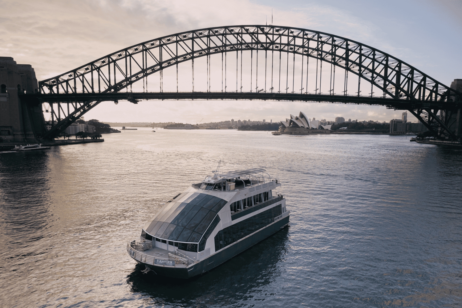 Kryssning av Sydney Harbour på en glasbåt Reserverat bord på huvuddäck Kockens signaturmeny Luftkonditionerad matsal 360° utsikt över Sydneys hamnImportant Information